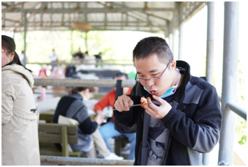 大家展示了不同的燒烤方法和技藝,歡聲笑語隨著縷縷炊煙縈繞在空中,大家吃著自己親手烤出的各種食品,聊著自己在工作和生活中遇到的各種趣事,其樂融融,食物被大家“洗劫一空”!